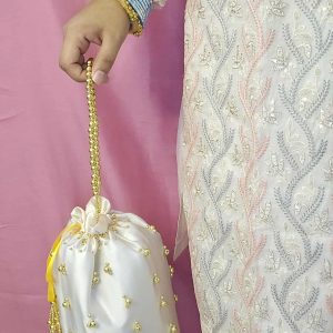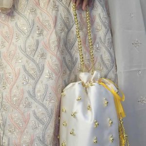 Add a touch of elegance and tradition to your outfit with our Handmade White Potli Bag 🤍